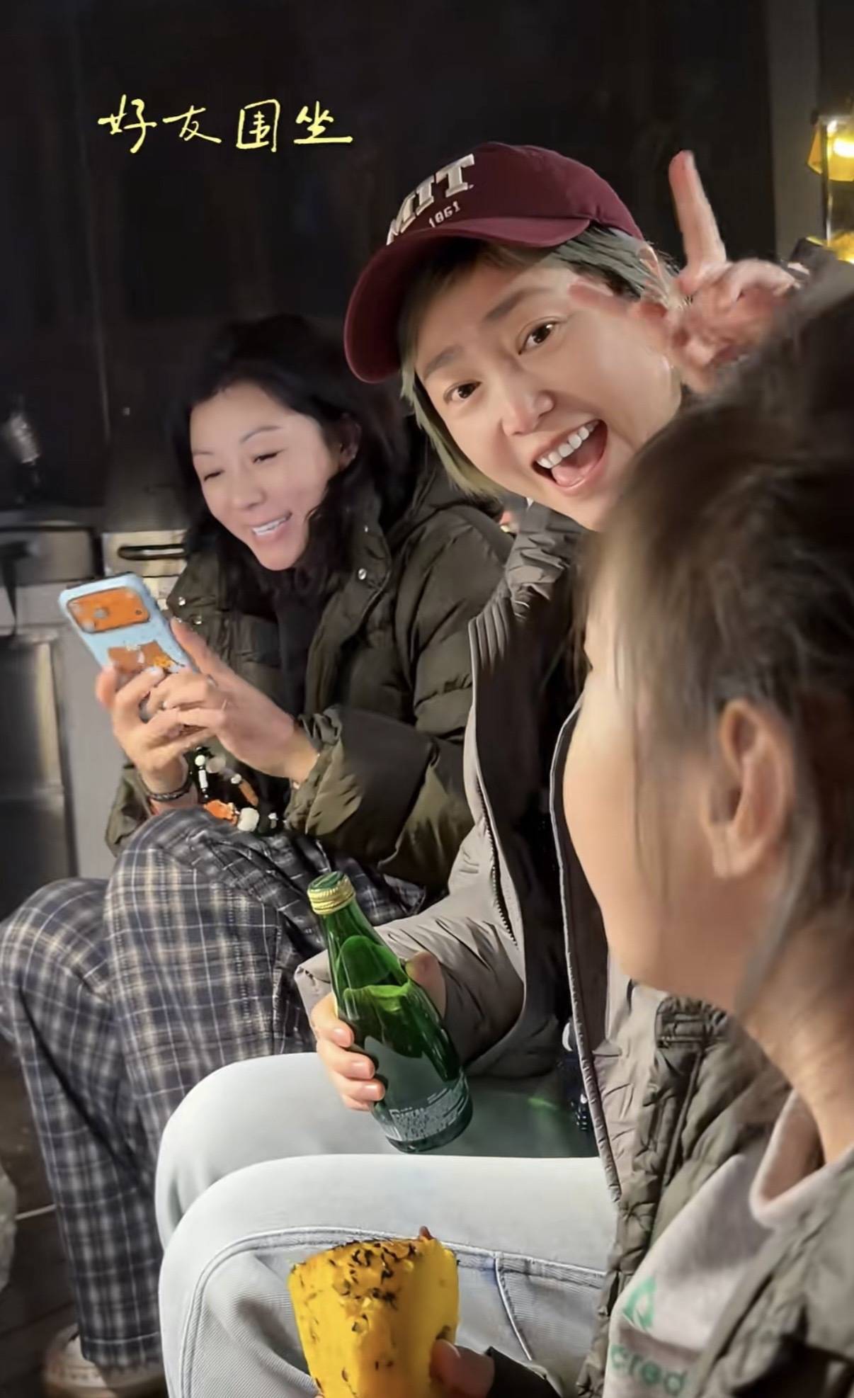 聚餐的时候,刘琳穿了一件车厘子红的红毛、搭配了宽松的牛仔阔腿裤,松弛感慢慢。和梅婷坐在一起,就像是老闺蜜的聚会。